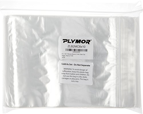 Plymor 8" x 10", 2 Mil (Pack of 100) Zipper Reclosable Plastic Bags