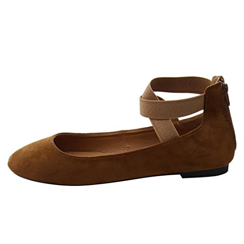 Refresh FQ40 Women's Back Zipper Strappy Ballet Dance Flats