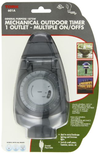 TORK 601A Plug-in Timer Outdoor General Purpose Mechanical Timer with 18" Cord, Grounded Plug, 15 Minutes, 1 Outlet