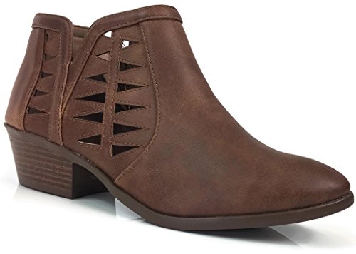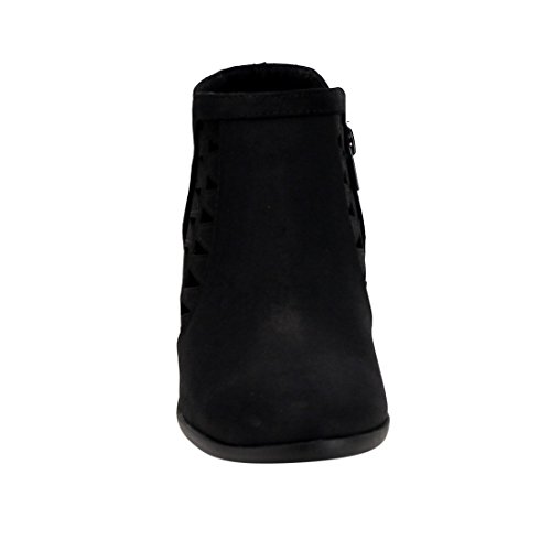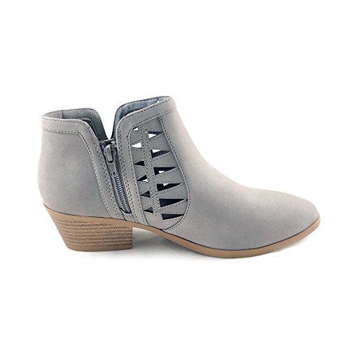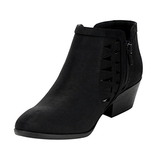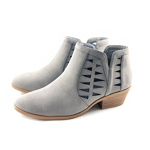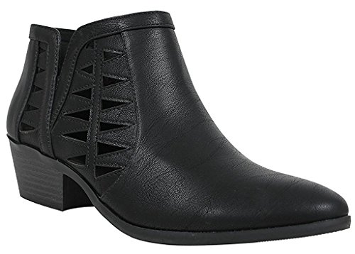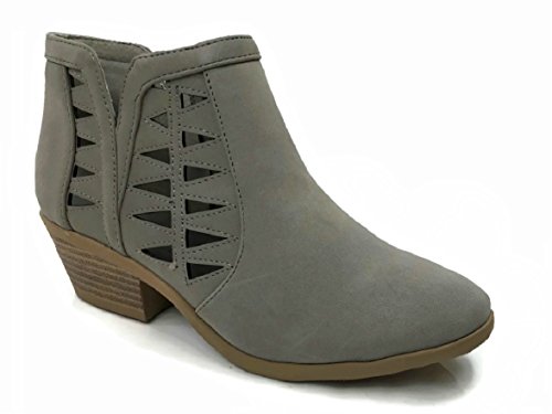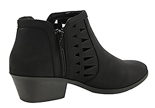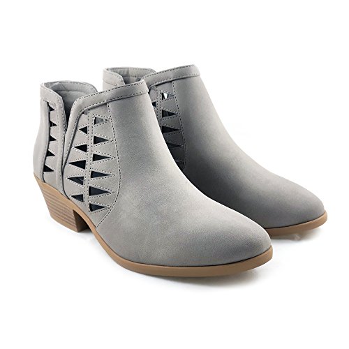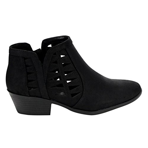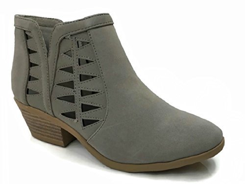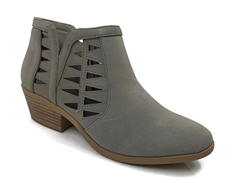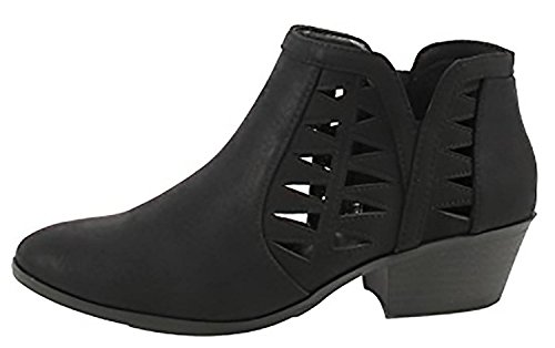 Product Description This cut-out ankle boot keeps your vibe fun and edgy. Featuring faux leather upper, decorative cutouts, chunky block heel and side zipper closure for easy on and off. 0