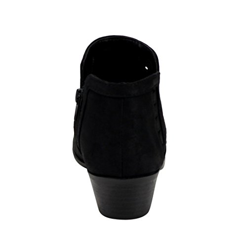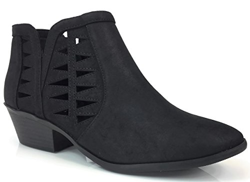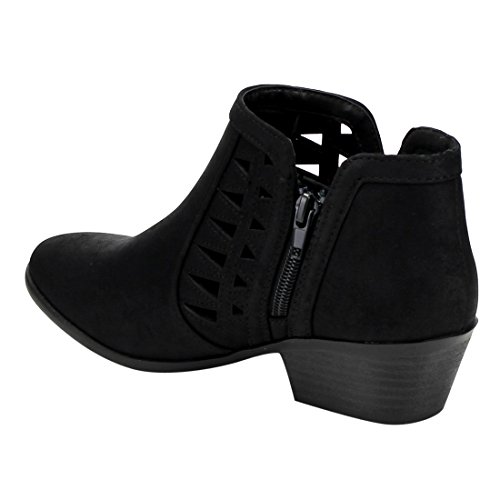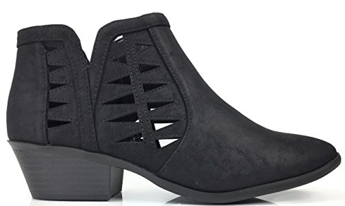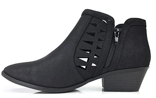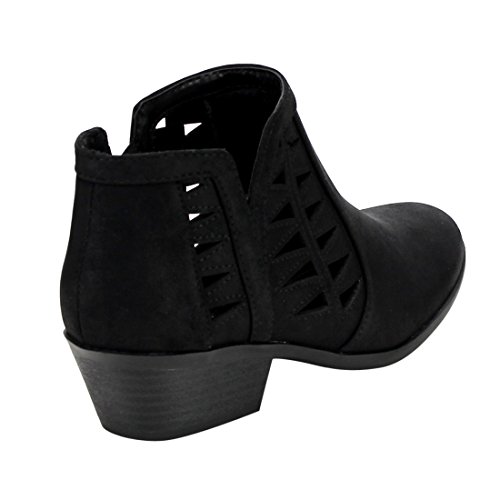 Soda FF50 Women's Perforated Cut Out Stacked Block Heel Ankle Booties