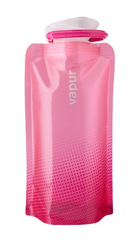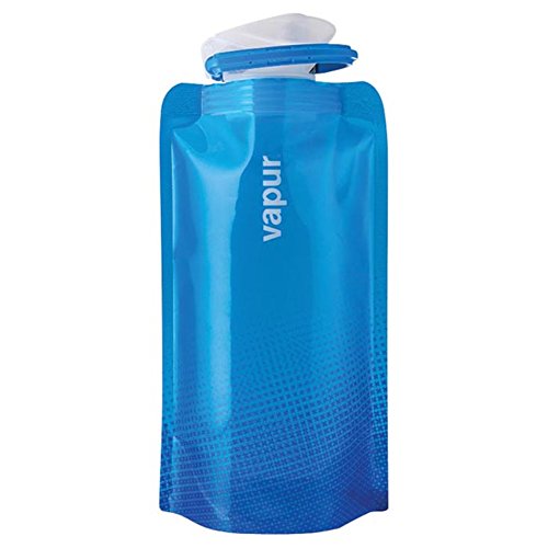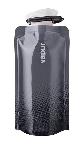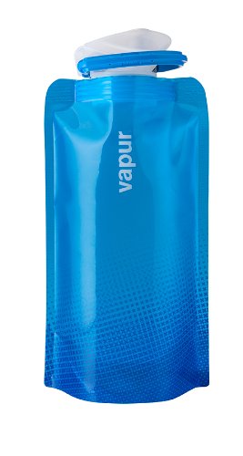 This water bottle can be folded, rolled or flattened. It stands when full. Light weight, BPA free and holds .5L. Easy to put ice cubes in the wide mouth top. Includes tough, easy to use Super Cap.