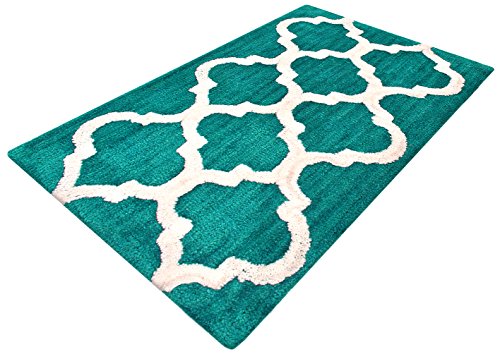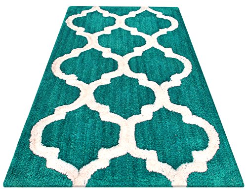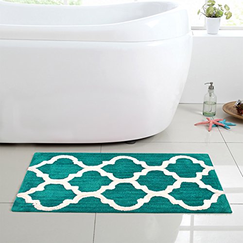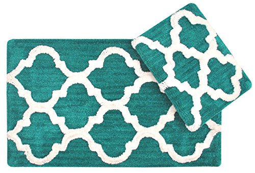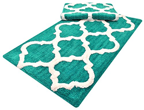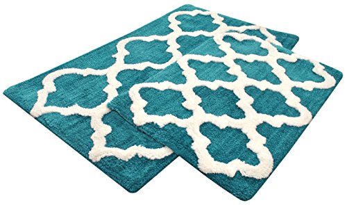 Year End Sale Microfiber Bath Mat Rug Set Plush Deluxe Micro Trellis Design with Spray Latex Back, Absorbent SuperSoft Plush Heavy Construction Machine Washable,Teal, 21x34/17x24 In Set of 2