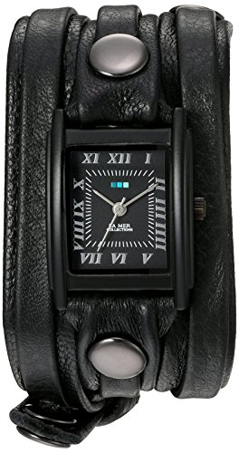 La Mer Collections Women's Quartz Stainless Steel and Leather Watch, Color:Black (Model: LMLW7011)