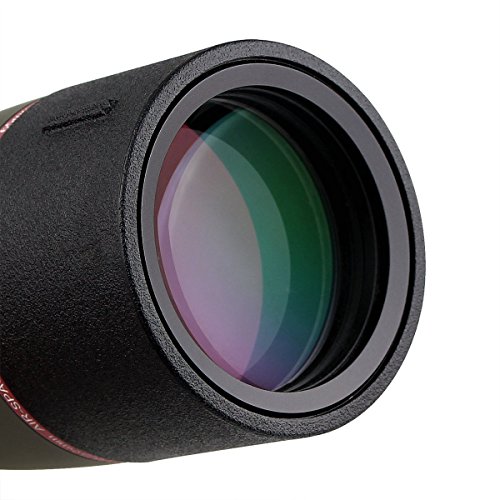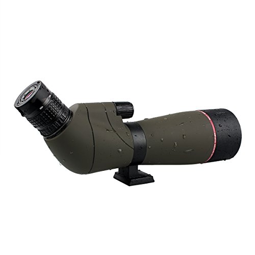 Waterproof fogproof spotting scope with tabletop tripod;ideal for all weather conditions;housed in a rubber armor covering to protect the scope from harsh weather conditions and includes an attached lens cover for added protection