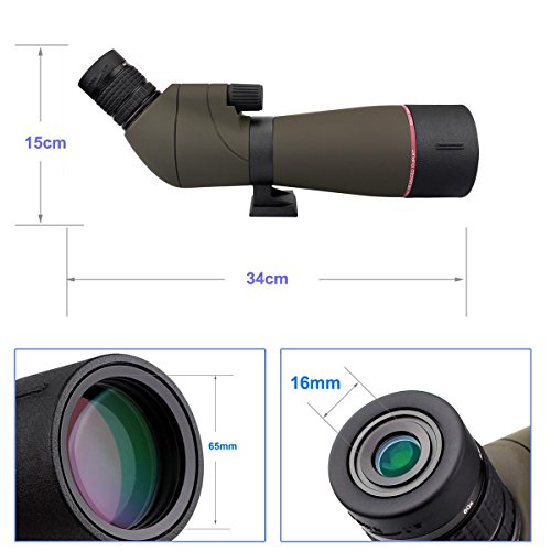 20-60x65mm magnification;the dynamic lens focusing system makes it easy to zoom in on target;adjustable zoom magnification with quick access focus which offers images that are noticeably brighter and sharper