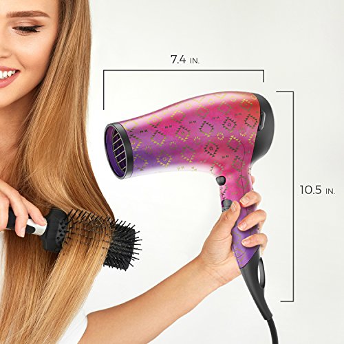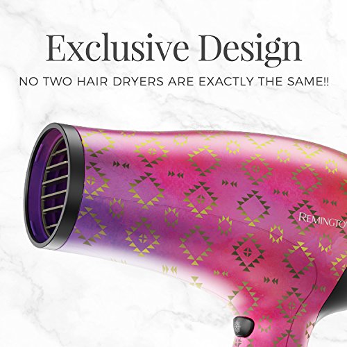 Studio : Remington Publisher : Remington Binding : Health and Beauty Product Description Beautiful designs for gorgeous hairstyles! The Remington Mid-Size Hair Dryer features an exclusive design ? no two dryers are exactly the same ? and powerful styling features. The 1875 watts max power motor produces strong airflow that dries hair fast. Three heat settings and two speeds let you find the best performance for your hair, and the cool shot button locks in your gorgeous style. The included concentrator attachment makes it easy to straighten hair while it dries. 0