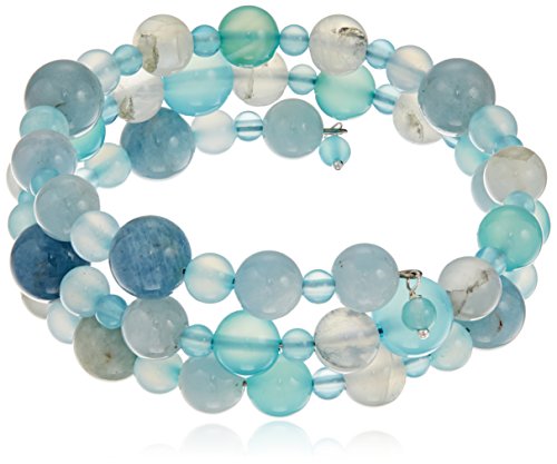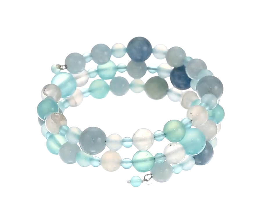 Handmade Coil with Aquamarine, Rainbow Moonstone and Sea Blue Chalcedony Beads Wrap Bracelet