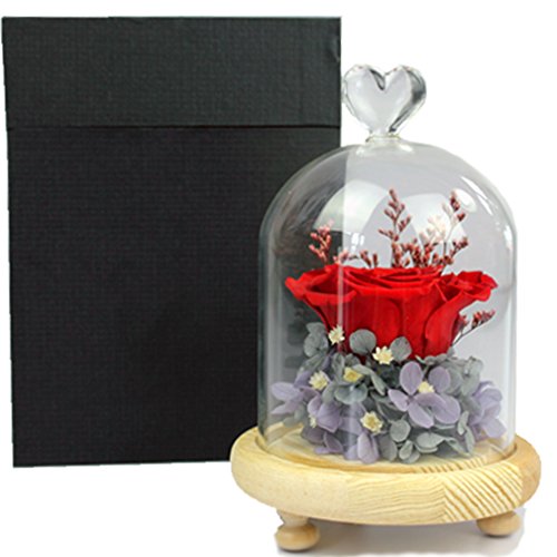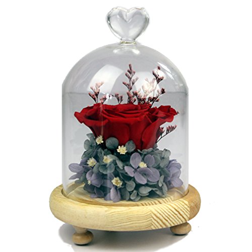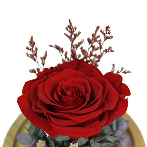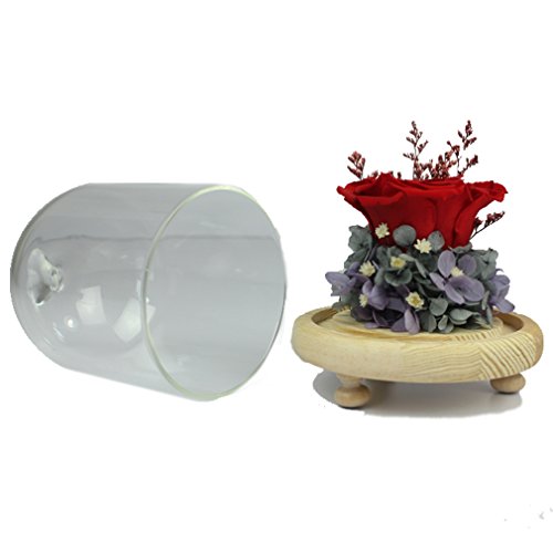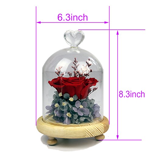 Preserved Real Rose with a glass cover, Eternal Flowers for Bedroom Party Table Decor Christmas Decorations Crafts Gifts for Women ,a perfect gift for valentine's day girlfriend's birthday (red)