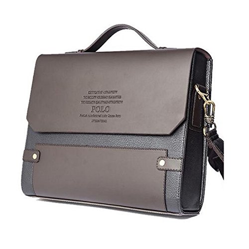 -. Title : Polo Men's Genuine Leather Secure Briefcase Shoulder Messenger Bags brown Business Laptop Bag