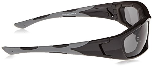 Crossfire Safety Glasses MP7 Dark Smoke Anti-Fog Lens Shiny Black Frame Foam Lined