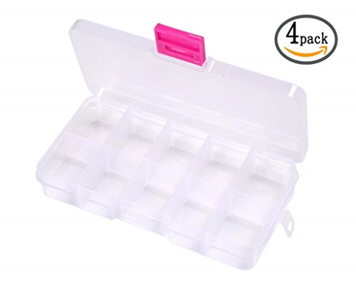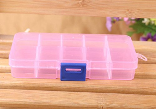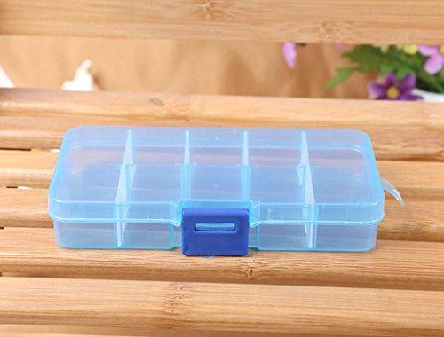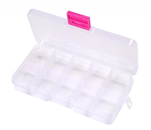 -. Feature : Material: Premium Plastic / Size: 13cm L x 6.5cm W x 2cm H / Removable Dividers: The gird inside the box can be moved, you can adjust the dividers to create your own size compartments. It is adjustable to create from 3 to 15 compartments. / Perfect for storing jewelry, earring, rings, beads, nail decoration, fishhook and other mini cosmetics. / Simple designed so it won't clash with the decor of your home or office.