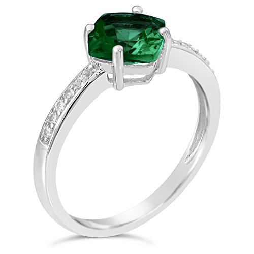 -. Title : Sterling Silver Lab-created Emerald and Lab-created White Sapphire Ring