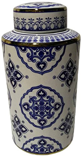 Benzara Traditional Ceramic Covered Decorative Jar, Blue/White