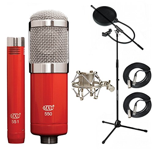 -. Feature : MXL 550/551R Condenser Microphone / Pop Filter, X2 20' XLR Cables and Shock Mount / JamStand JS-MCFB100 Fixed Boom Mic Stand (Black)