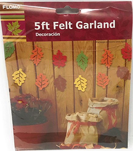 Flomo Thanksgiving Autumn Fall Leaves Felt Garland, 5-Feet