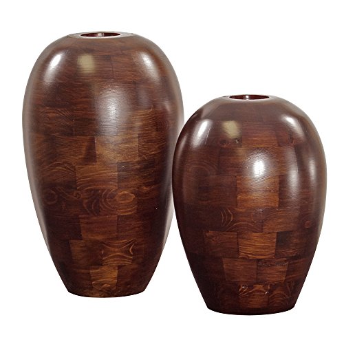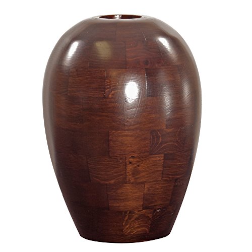 This wood vase features a sleek tapered cylindrical shape. It is finished in a rich mahogany stain which highlights the unique wood grains of the natural materials used to sculpt the piece. Alone or in multiples this vase will look great in any room where you need a punch of eclectic style. Pair with the larger size to complete your look. Dimensions: 9" diameter x 12"HFeature