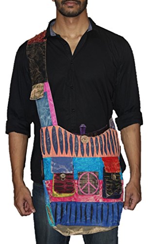 TRIBESMAN-Blue Red Hobo Cotton Sling Cross Body Messenger Shoulder Bag Hippie Boho Bohemian Light Roomy Spacious