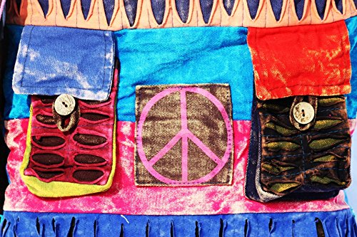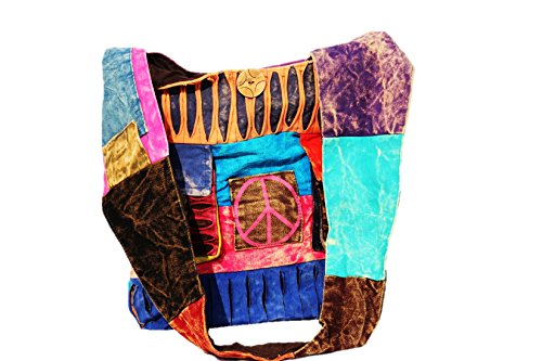 ✮STRONG, DURABLE, COMFORTABLE - Exquisite handmade stone washed fabric with Om Peace symbols. Its deep design holds all of your essentials, while wide straps provide a comfortable carry. Big Coconut shell buttons. Inside is lined with durable canvas fabric.