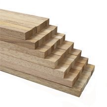 - Hardwood square dowel rods milled from unfinished, natural wood