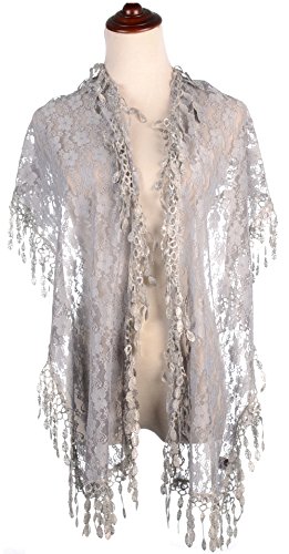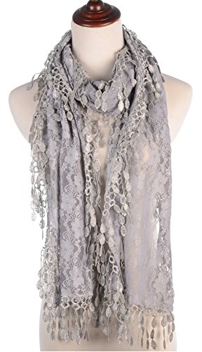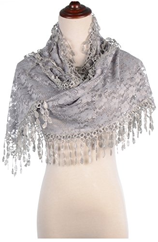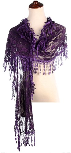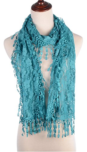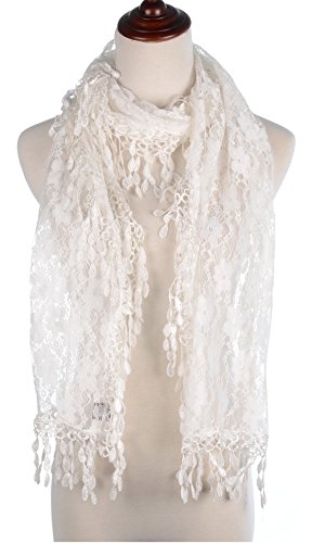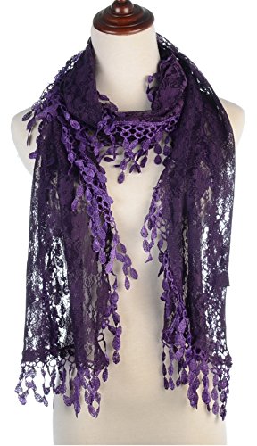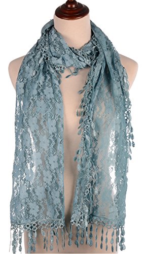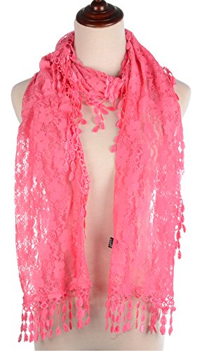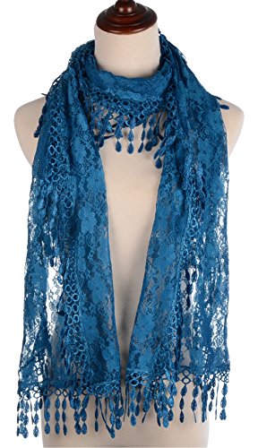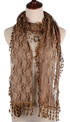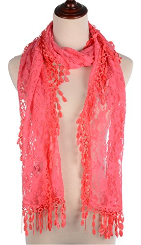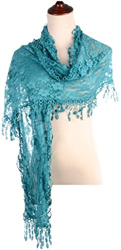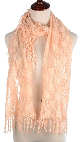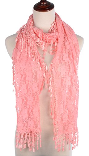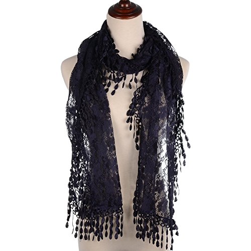 BYOS Womens Fashion Floral Pattern Lace Scarf Shawl With Tassel