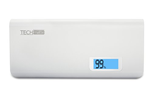 TechMatte 10000mAh Dual-Port Power Bank External Battery Portable Charger with LED Display-White