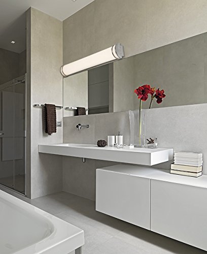 SOPHISTICATED DESIGN: Clean modern design with beautiful angles and a simple feel. Brushed nickel finishes with a glass free frosted sconce for even light distribution with exceptional color accuracy. 3000K LED lights offering a warm feel unlike the harsh fluorescent white-light alternatives. LED annual energy savings.