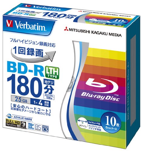 Verbatim Mitsubishi 25GB 4x Speed BD-R Blu-ray LTH TYPE Recordable Disk 10 Pack - Ink-jet printable - Each disk in a jewel case