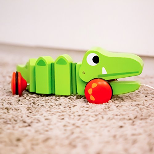 - Toddler pull along toy has high quality, bright colors appeal to toddler, smooth surface without spines. Encourages children to develop fine motor skills and play actively as they take their new crocodile friend on adventures around the house.