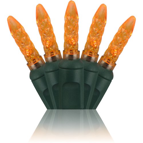 Holiday Lighting Outlet M5 LED Christmas Mini Lights, Mini Ice, M6, Orange, Green Cord, 70LT 4" Spacing, 23.7'