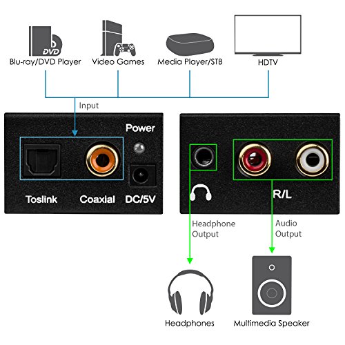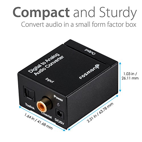 Fosmon HD8023 Digital Optical Toslink (SPDIF) Coax to Analog (L/R) RCA Audio Converter & 3.5mm Stereo Audio Jack with Power Supply Adapter