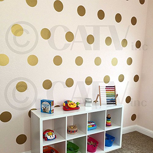 6x6 Set of 24 Polka Dot Circles vinyl lettering decal home decor wall art saying (Gold)