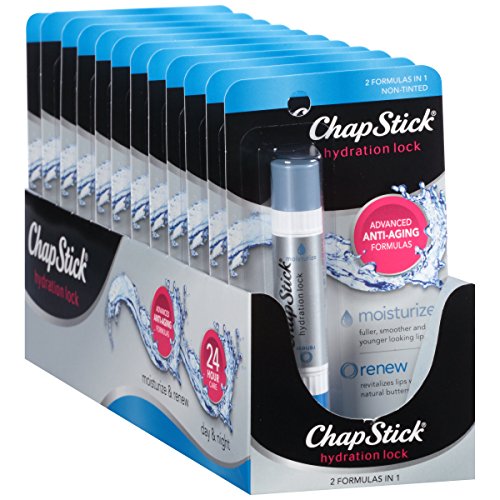 ChapStick Dual-Ended Hydration Lock Lip Balm Tube, Anti-Aging Formula, 0.154 Ounce Each, Moisture & Renew Formula (12 Blister Packs of 1 Stick, 12 Total Sticks)