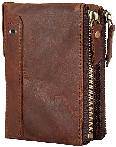 (COWFEX)/Accessories/Wallets, Money Key Organizers/DIRECT FROM USA/COWFEX Wallet for Men Double Zipper Crazy horse leather card case holder purse