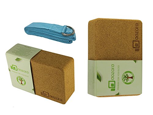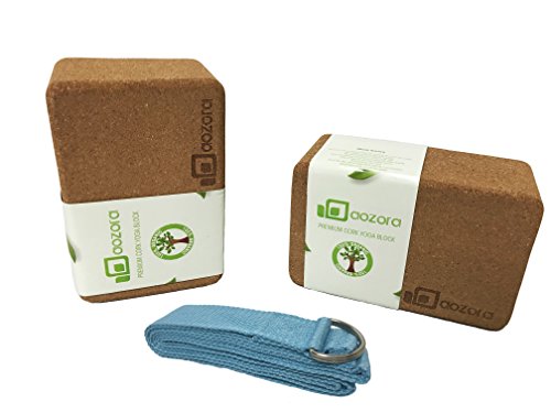 Aozora Cork Yoga Block | Sustainable & Eco Friendly | 2 Pack and yoga Strap Set | Made of the Finest Natural Cork for Better Support, Balance & Comfort
