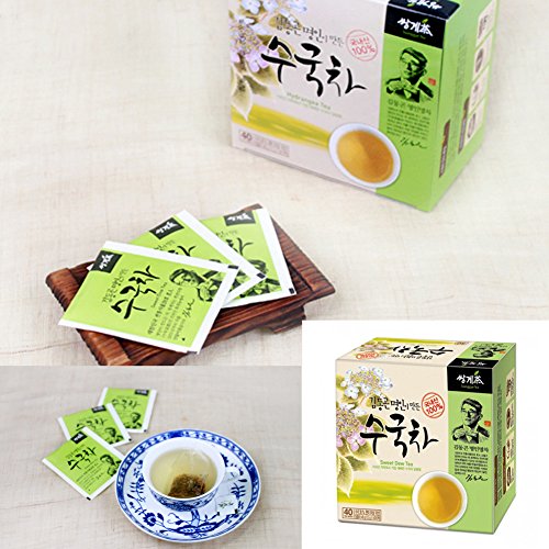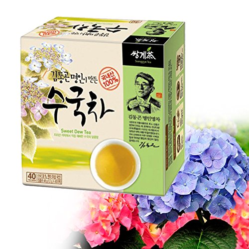 -. Binding : Misc. -. Brand : Ssangkye Tea -. EAN : 8805167009727 -. Feature : Hydrangea Sweet Dew Tea / Korea Food / Health Food -. IsAdultProduct : 0 -. Label : Ssangkye Tea -. LegalDisclaimer : Actual product packaging and materials may contain more and different information than what is shown on our website. We recommend that you do not rely solely on the information presented and that you always read labels, warnings, and directions before using or consuming a product. Please see our full disclaimer below. -. Manufacturer : Ssangkye Tea -. PackageQuantity : 1 -. ProductGroup : Grocery -. ProductTypeName : GROCERY -. Publisher : Ssangkye Tea -. Size : 1.2g X 40 Tea Bags -. Studio : Ssangkye Tea -. Title : Korean Hydrangea Sweet Dew Tea 1.2g X 40 Tea Bags