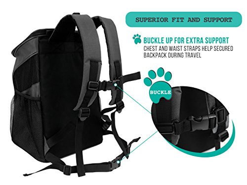 - Superior Fit, Comfort, and Convenience – This backpack comes with both waist and chest buckles to give you extra support. We also added side pockets for extra capacity and a collapsible pet bowl so you can keep your pet hydrated on the go!