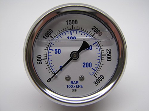 NEW STAINLESS STEEL LIQUID FILLED PRESSURE GAUGE WOG WATER OIL GAS 0 to 3000 PSI LOWER MOUNT 0-3000 PSI 1/4" NPT 2.5" FACE DIAL FOR COMPRESSOR HYDRAULIC AIR TANK