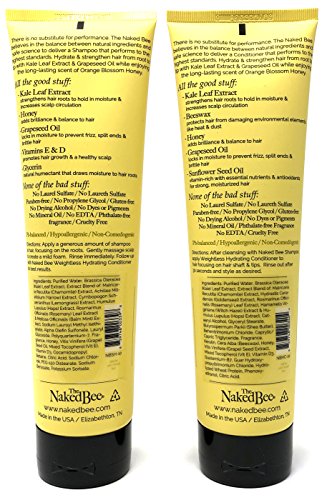 - NAKED BEE SHAMPOO AND CONDITIONER – with kale and grapeseed oil, vitamins E & D, and real honey