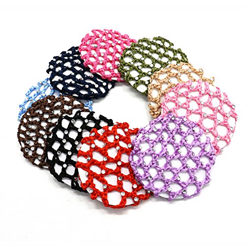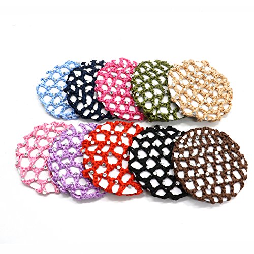 Pack Of 10 Fashion Bun Cover Snood Hair Net Ballet Dance Skating Chic Crochet With Pearl For Women Girl ,Assorted Color