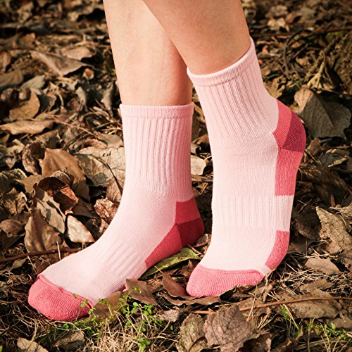 -. Feature : FEATURE: The Outdoor Sports Running Hiking Ankle Crew Socks Set of Women/Girls are Great for all Seasons, with Smart Classical Ergonomics Design, High-Density Knitting Fibers, Elastic Ventilation Mesh, Fluffy Terry Inside, Stretchable Feet Arch Support Compression Band and Seamless Buffer/Balance Pressure Padded Cushion, Breathable, Warm, Comfy and Durable, Perfect Fit Hiking Boots or Daily Footwear Shoes, Ideal Presents for You, Your Family and Hiker Friends; / PERFORMANCE: The Sports Socks Can Help Strengthen Your Feet and Protect Tendon from Injury of Shoe Friction, No Blister, No Bunching, No Whirling and Slipping; Moisture Wicking, Keep Your Feet Dry and Cool without Sweat; Provide Premium Breathability, Movement and Shock Absorption, Reinforced and Protect Your Toe, Metatarsal, Plantar Fascia and Heel Parts; Improving Blood Circulation, Reduces Your Feet Fatigue, Swelling and Cramping, Speed Up Recovery During Long Time Walking/Hiking Activities; / SOCKS SIZE GUIDE: Refer to US 5 - 9 of Women/Ladies/Girls; Please Allow There have Tiny Difference of Color from Different Monitor Display, and 0.5-1 cm Tolerance of Dimension and Length Difference among These Walking Socks due to Manual Measurement; NOTE: These Socks are ANKLE Hiking Socks, and Their Hose are Only 4.7 inch/12 cm, NOT TOO LONG and NOT Calf-High; You May Ask Any Questions under "Customer questions & answers" of This Page to Get Definite Respond from Community! / OCCASION: The Athleisure Socks are Great for Any Outdoor Athletics Activities and Indoor Everyday Lounging Wear, such as Runner Running, Hiker Hiking, Walking, Mountaineering, Trekker Trekking, Cyclist Cycling, Outdoor Trail, Camping, Climbing, Traveling, Backpacking, Jogger Jogging, Golf, Snowboard, Fishing, Fitness, Gym, Exercise, Workout, Crossfit, Pilates, Yoga etc.; Wherever You are Hike in Mountain, Canyon, Desert, Beach, Wetland, Grassland, Farm, Trail, Park, Lawn, Room, Office etc.; / 100% MONEY BACK GUARANTEE, RISK FREE: We LOVE to Respond to Your Any Questions, Comments, and Requests as Fast as We Can, We Provide the Good Quality Sports Socks at Great Value! If You are Not Fully Satisfied with Our Socks at Any Reason, Simply Send Back these Socks within 30 Days for Full Refund Unconditionally, No Questions Asked! Try It Now, Just Click "Add to Cart" Button and Bring Them to Home Quickly! Please Order from KoooGear Carefully to Ensure Original Socks Quality! Enjoy Them!