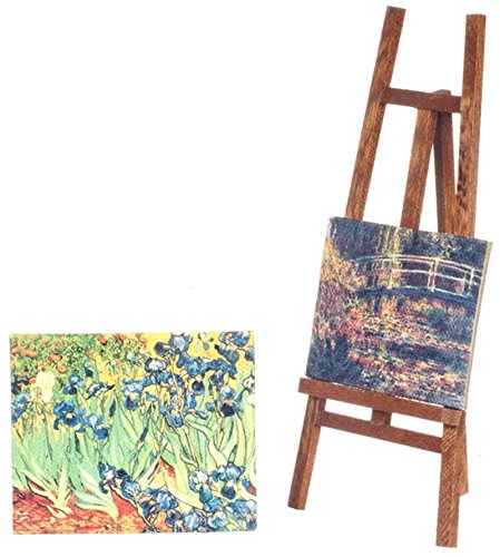 -. Title : Dollhouse Miniature 1:12 Scale Easel with 2 Canvas Paintings #G7924
