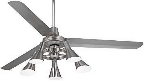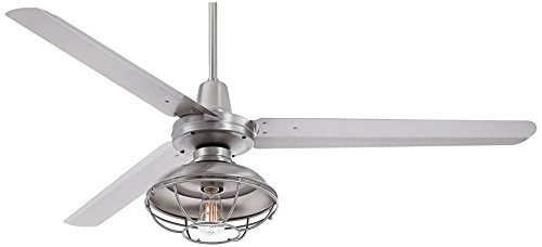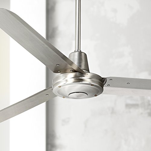 Enjoy a powerful refreshing breeze with this 60" Turbina™ industrial style ceiling fan. The three-speed motor features remote control operation and comes in a brushed steel finish with matching metal blades. Blades must be mounted at least 10 feet from the floor. From Casa Vieja® ceiling fans.