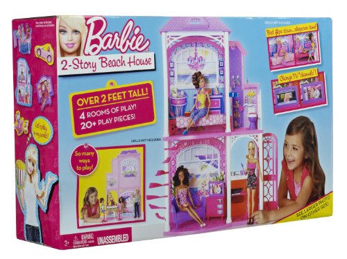 -. Binding : Toy -. Brand : Barbie -. Department : boys -. EAN : 5053086055544 -. Feature : With Barbie's new Beach House, the fun never ends / Featuring 2 stories and 4 areas of play / Play areas include living room with spiral staircase, bed room, bath room, and kitchen / Girls can arrange and rearrange the furniture and piece-count for endless fun / Includes furniture and countless house hold accessories -. IsAdultProduct : 0 -. Label : Mattel -. Manufacturer : Mattel -. Model : W3155 -. MPN : W3155 -. PackageQuantity : 1 -. PartNumber : W3155 -. ProductGroup : Toy -. ProductTypeName : TOYS_AND_GAMES -. Publisher : Mattel -. Studio : Mattel -. Title : Barbie 2-Story Beach House -. UPC : 789264304917 -. Warranty : 1 year warranty against manufacturer defects