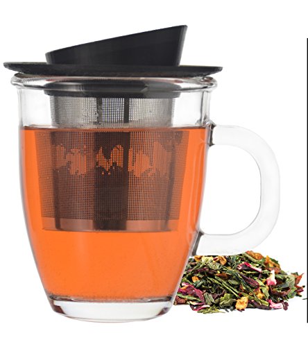 EASY-USE, EASY CLEAN - Elegant style designed for easy use and cleaning - dishwasher safe. This appealing glass Tea Mug comes with a removable Stainless Steel infuser. The cover is perfect for keeping your tea warm and also doubles as a holder or trivet for your infuser when your tea is done steeping!