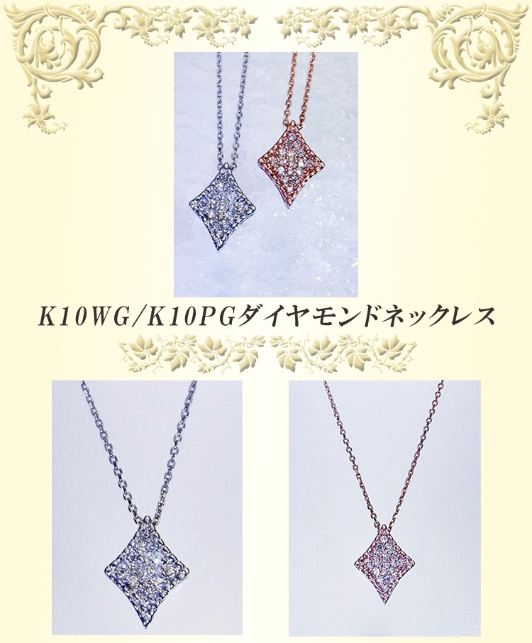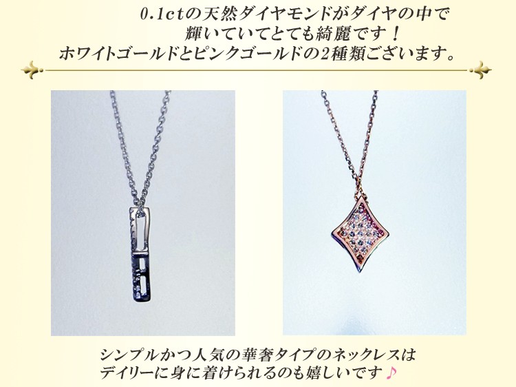 商品説明 0.1ct天然ダイヤモンドがダイヤの中で輝いていて綺麗です。2種類の素材(K10WG・K10PG)がございます。