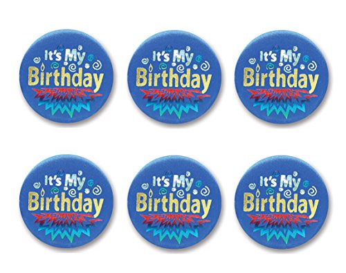 Beistle BN192 6-Pack It's My Birthday Satin Button, 2-Inch, Blue