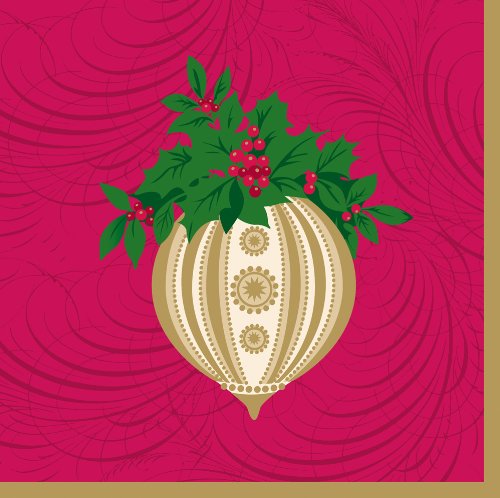 C.R. Gibson Decorated 3-Ply Paper Napkins, 5-Inch, 20-Pack, Gilded Ornament