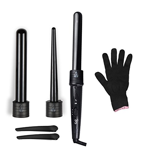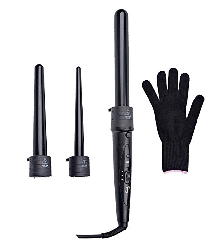 Curling Iron Wand 3 in 1 Set with 3 Interchangeable Ceramic Barrels Hair Curler and Heat Protective Glove