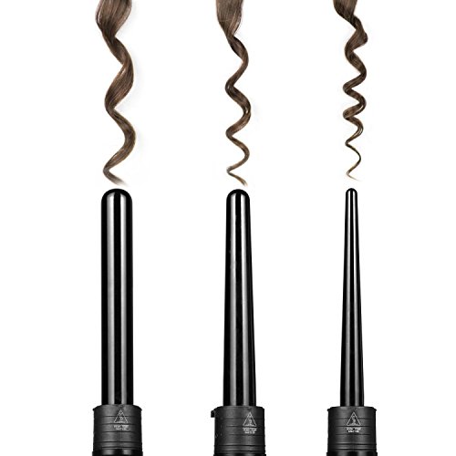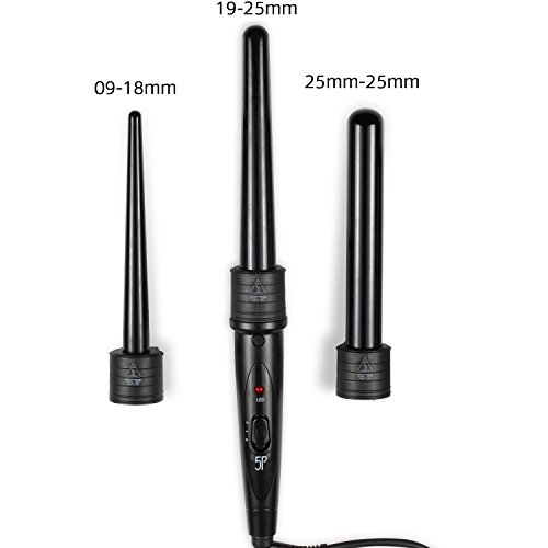 - INTERCHANGEABLE CERAMIC BARRELS: The size of the curling iron is 09-18mm, 18-25mm, 25- 25mm. These sizes give you three options, meets your different curling style needs.